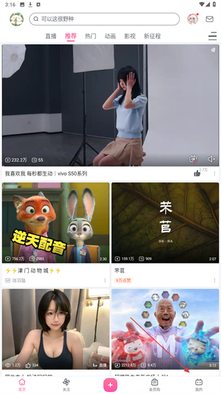 1、啟動嗶哩嗶哩的應用,在首頁底部點擊我的圖標。