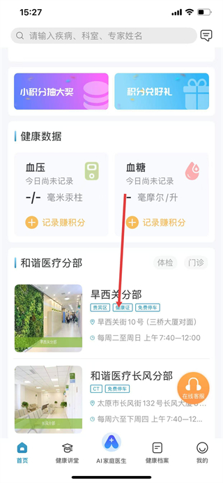 1、打開和諧醫療,在首頁找到目標分院并點擊。