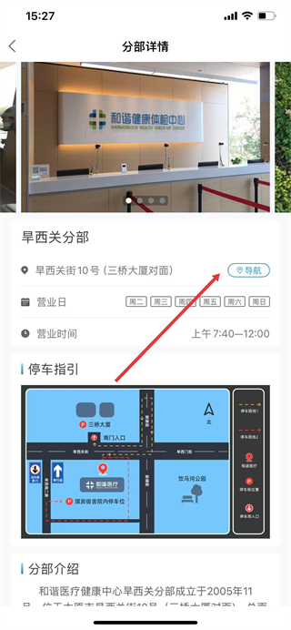 2、進入分部詳情頁面,找到地址欄右側的導航按鈕并點擊。
