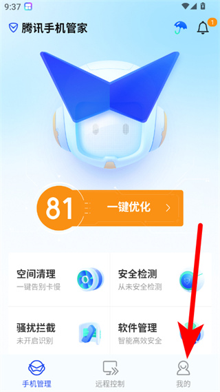 1、打開騰訊手機管家應用,點擊導航欄中的我的選項,進入個人中心。