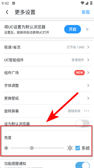3、進入更多設置后,找到亮度對應的滑塊,拖動即可調節亮度。