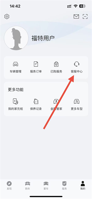 1、在福特派互聯應用,點擊界面底部我的選項,進入我的頁面。