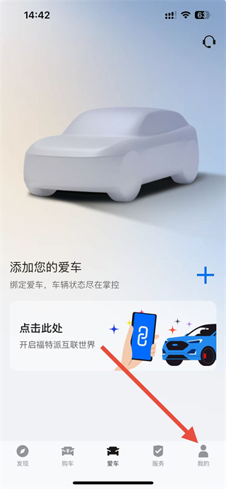 1、打開福特派互聯APP,點擊右下角我的進入個人頁面。