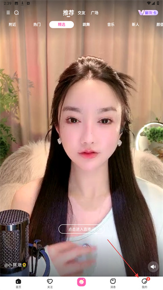 1、啟動花椒直播APP,進入時點擊下方的圖標。