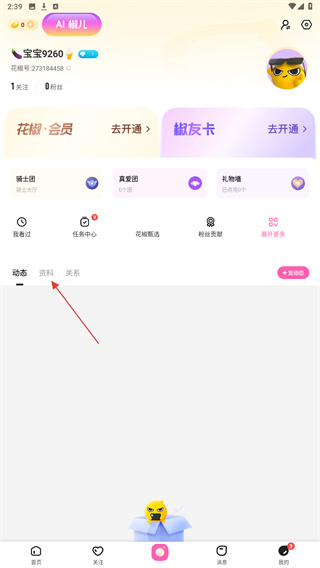 2、在我的頁面內,點擊資料的選項,進入個人資料編輯界面。