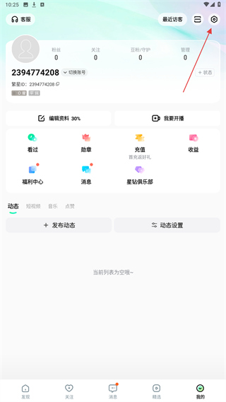 2、在個人中心頁面內,點擊右上角的功能按鈕。