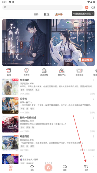 1、打開貓耳fm的APP,進入首頁點擊右下我的圖標。