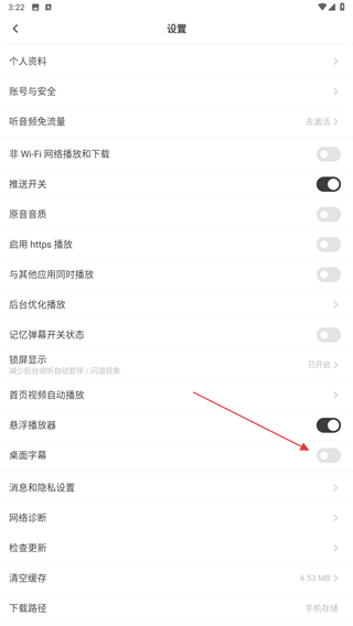 3、進入設置的頁面內,找到桌面字幕并開啟右側的按鈕。