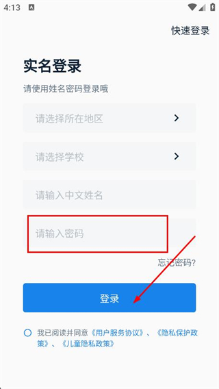 3、輸入密碼,點擊登錄按鈕,即可完成實名登錄操作。