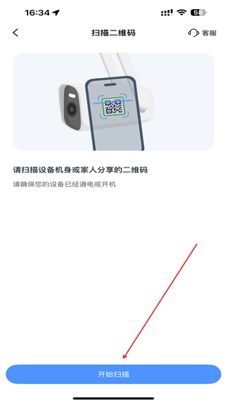 4、進入掃碼二維碼的頁面內,點擊開始掃描即可。