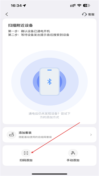 3、進入掃碼設備的頁面內,點擊掃碼添加。
