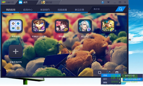 1、啟動BlueStacks藍疊模擬器后,在首頁右下角有一多開圖標,點擊后選擇創建,一般來說選擇“新引擎并復制應用”,因為選擇“新多開引擎”只是復制模擬器,而“新引擎并復制應用”在復制模擬器的同時,把應用也復制并安裝完畢,而我們最終是希望同時多開幾個游戲,所以建議大家在首頁安裝好游戲后,選擇“新引擎并復制應用”。