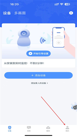 1、打開易視云APP,進入設備界面,點擊底部我的選項,進入個人頁面。