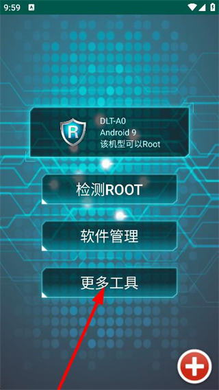 1、打開一鍵root大師,在主界面點擊更多工具選項。