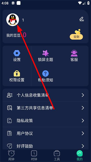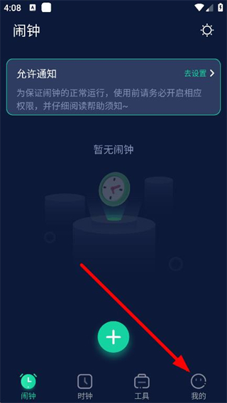 1、打開手機鬧鐘app,點擊底部導航欄的我的選項。