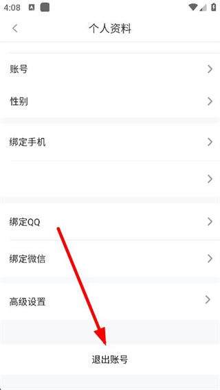 3、在個人資料頁面中,點擊下方的退出賬號選項。