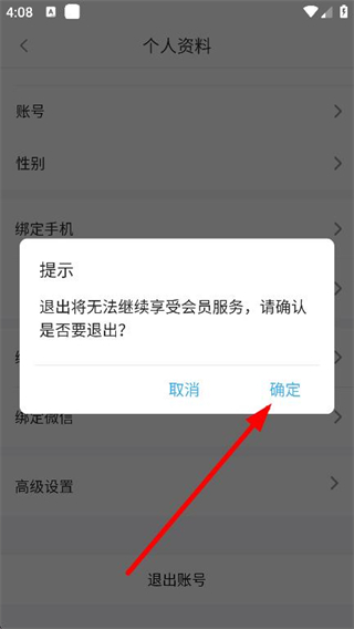 4、在彈窗中,點擊確定,即可完成賬號退出操作。