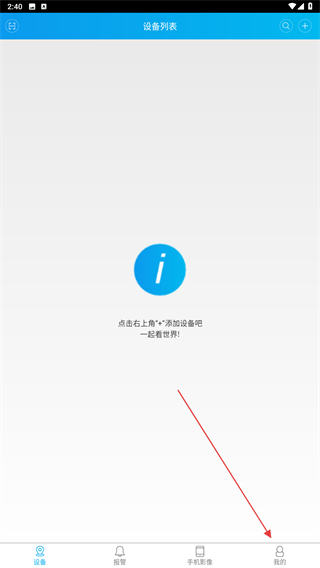 1、啟動監控眼的APP,進入時點擊下方導航欄我的圖標。