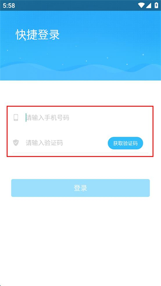 3、在快捷登錄界面,找到請輸入手機號碼輸入框,填寫對應的手機號碼信息。