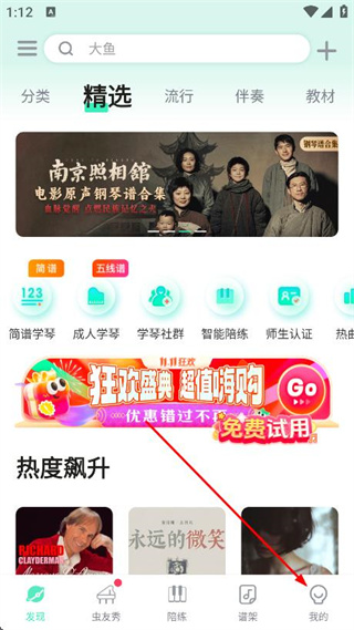 1、打開蟲蟲鋼琴app,點擊底部導航欄的我的選項。