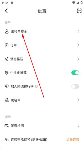 3、進入設置頁面后,點擊上方的賬號與安全選項。