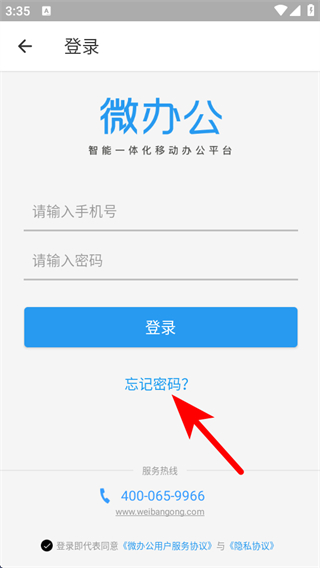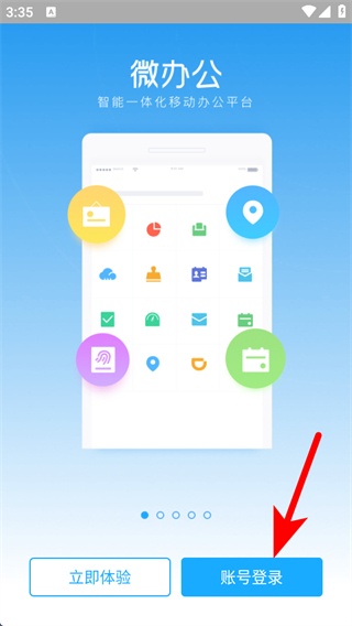 1、打開微辦公APP,點擊賬號登錄的按鈕,進入登錄的頁面。