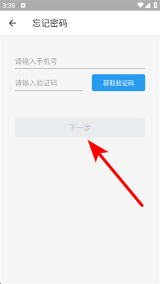 3、在頁面輸入手機號和驗證碼,點擊下一步,按照提示完成找回。