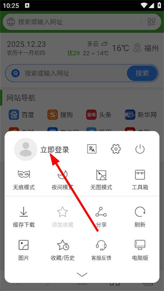 2、在彈出的菜單中,點擊立即登錄,進入個人中心頁面。