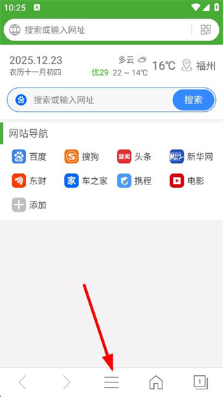 1、打開好網址大全app,點擊頁面底部的三橫線菜單按鈕。