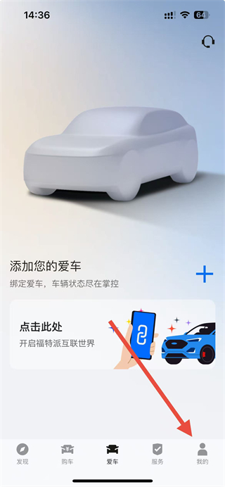 1、打開福特派互聯APP后,點擊底部導航欄我的選項,進入我的界面。