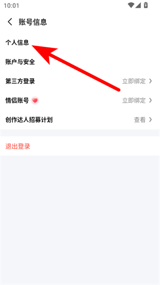 4、在賬號信息頁面,點擊個人信息選項,進入個人信息編輯頁面。