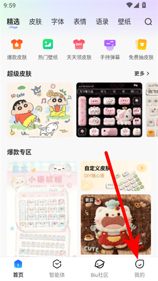1、打開訊飛輸入法app,點擊底部導航欄的我的選項,進入個人中心頁面。
