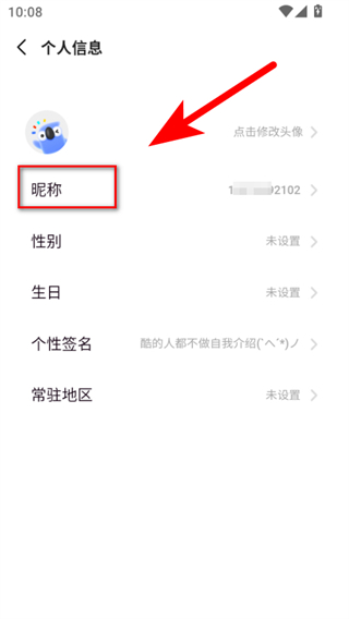 5、在個人信息頁面,點擊昵稱選項,輸入新昵稱后完成修改操作。