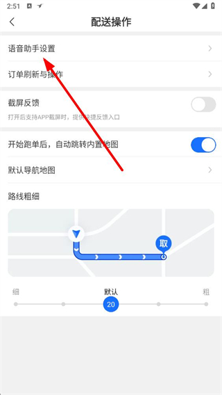 4、在配送操作頁面,點擊語音助手設置選項。