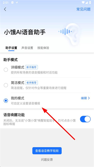 5、進入后可設置小餓AI語音助手的模式等語音播報相關內容。