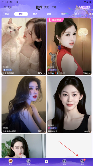 1、打開花椒直播的應用軟件,點擊右下角我的功能圖標。