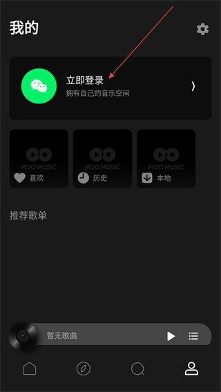 1、啟動MOO音樂的應用,進入時點擊右下角人像的圖標。