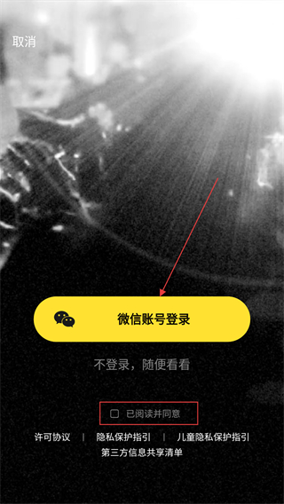 3、在登錄的頁面內,勾選后再點擊微信賬號登錄即可。