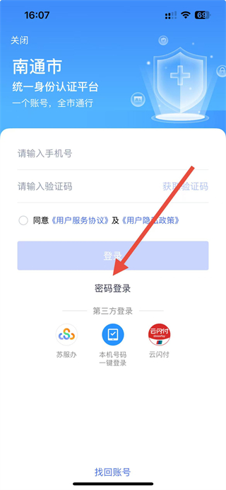 3、在登錄界面中,找到密碼登錄選項并點擊,切換至密碼登錄的輸入界面。