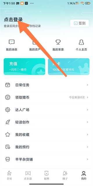 2、在個人中心界面,點擊點擊登錄選項,進入登錄選擇頁面。