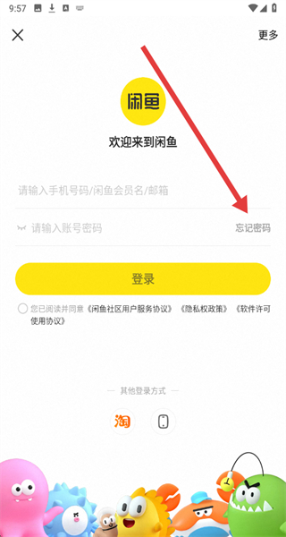 3、在登錄界面輸入手機號碼/閑魚會員名/郵箱和賬號密碼。