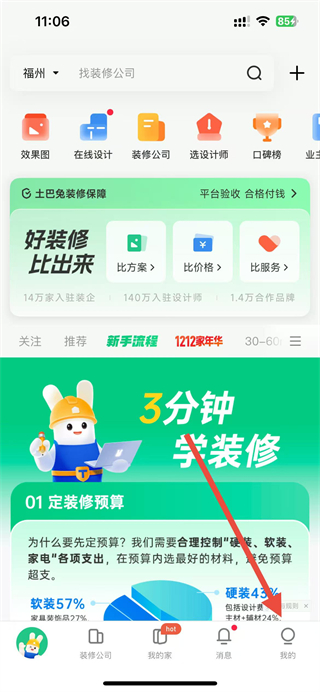 1、打開土巴兔裝修app,點擊右下角我的選項,進入個人頁面。