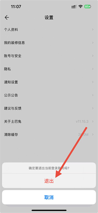 4、在彈出的確認彈窗里,點擊退出按鈕,即可完成土巴兔APP的賬號退出操作。