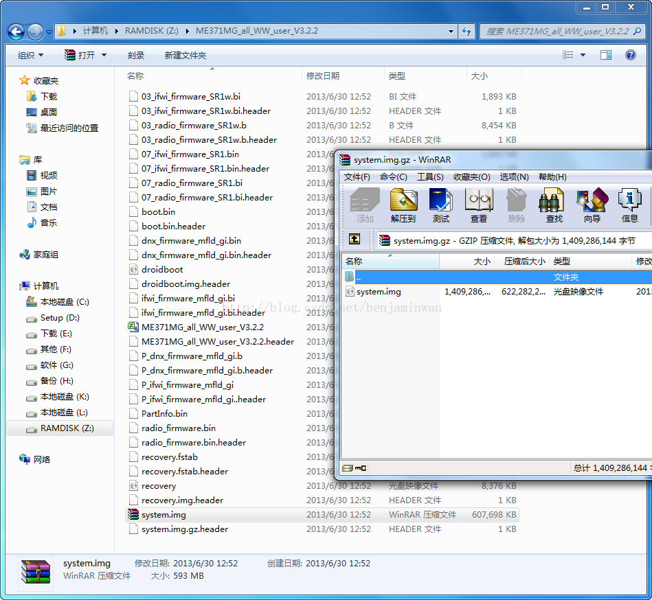 1.下載好的asus官方刷機包為zip格式,解壓后,生成一個raw格式的文件。