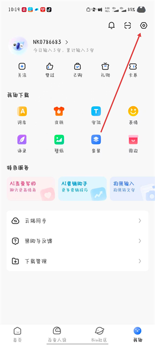 1、打開訊飛輸入法APP,點擊設置圖標。