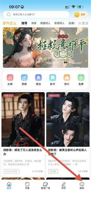 1、在話本小說首頁,點擊右下角我的選項,進入個人中心界面。