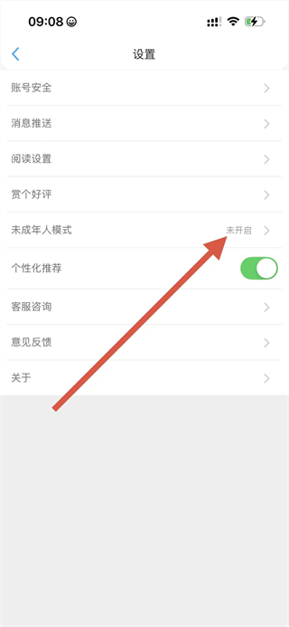 3、在設置頁面,點擊未成年人模式選項,進入對應設置界面。