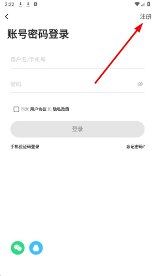 3、在登錄界面的右上角,找到注冊按鈕并點擊,進入新賬號注冊的信息填寫頁面。