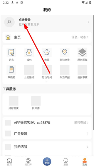 2、在我的界面中,找到點擊登錄區域并點擊,跳轉至登錄頁面。