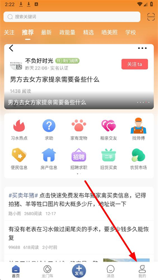 1、打開習水生活網APP后,點擊底部我的選項,進入對應的操作界面。